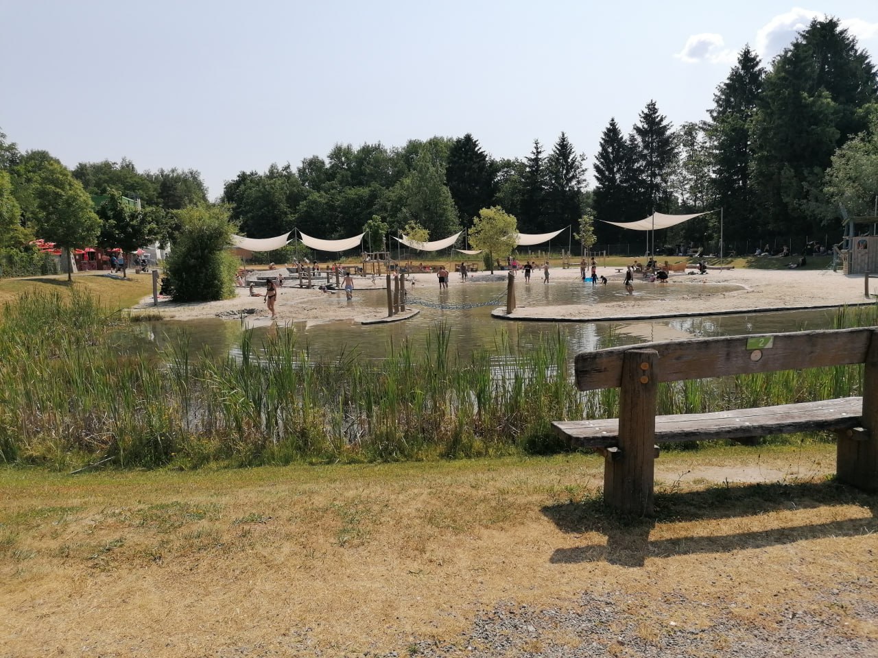 Wir treffen uns am kostenlosen Parkplatz vor dem Freien Strand, welcher gegenüber vom Bootsverleih ist und gehen anschließend zum Strand. Die Kinder können derweilen im Wasser plantschen.